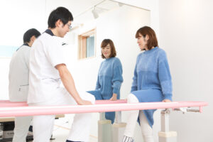 患部を施術後、徐々に歩行訓練をしていきます。その時に患者さんは痛みへの恐怖心が伴うため、その心のケアも一緒に行われます。その日の患者さんの症状を見ながら施術を行う、その人に合った細やかなオーダーメイドの施術をされています。