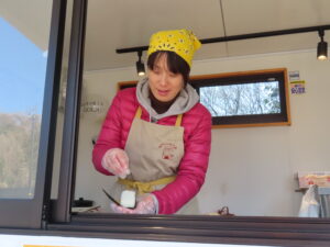 おむすびは注文を受けてから握るので、いつもできたてホカホカ。温子さんは、ただおむすびを販売するだけでなく、おむすびを作りながらお客さんと会話するのも楽しみのひとつだとおっしゃいます。